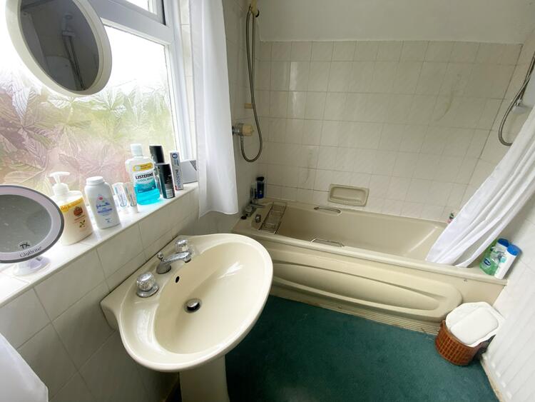 Being fitted with a suite comprising of a panelled bath with Mira shower over and a pedestal wash hand basin. Built in airing cupboard, tiling to splash prone areas, ceiling light point and an obscure double glazed window.