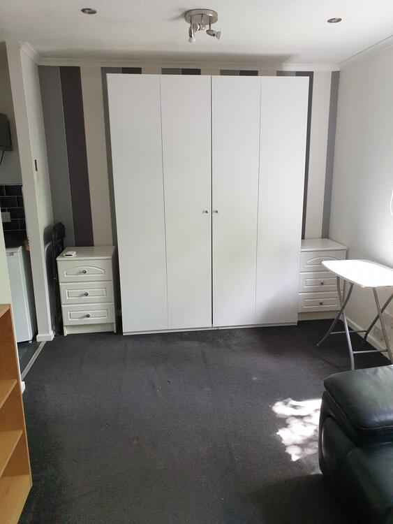 This studio apartment is offered to the auction with a modern kitchen with black tile splash-back and fitted oven/hob, fitted bathroom with shower cubicle and living room/bedroom with 2 double glazed windows and a Murphy Bed, changing room and fitted wardrobe.