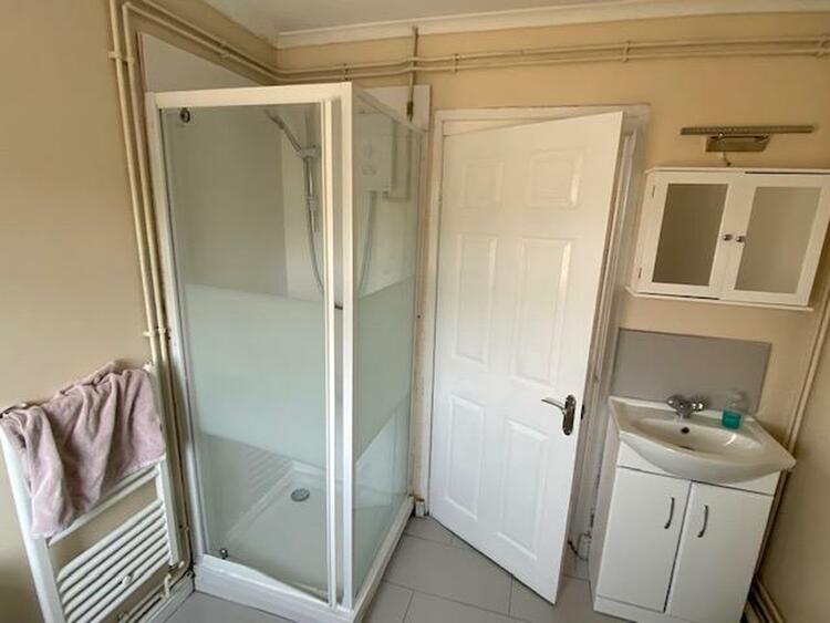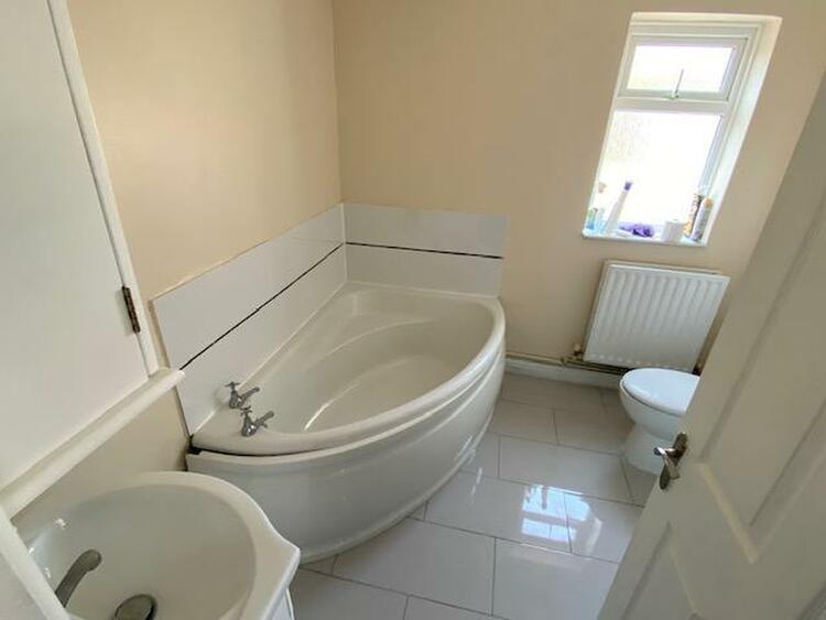 With uPVC double glazed window. A four piece bathroom suite in white comprises a panelled corner bath, separate shower cubicle, low level wc, pedestal wash hand basin, tiling to walls, extractor fan, central heating radiator and laddered heated towel rail.