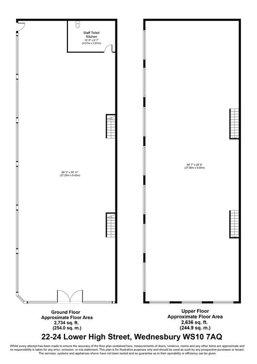 This substantial two storey property is prominently positioned on the corner of Lower High Street and Russell Street in the popular town of Wednesbury. The area offers excellent transport links which include junction 9 of M6 motorway approximately two miles to the north east as well as a popular bus network servicing the immediate area. The property comprises a spacious retail unit to the ground floor including WCs and ancillary areas and open-plan retail space to the first floor. The property measures approximately 5,895 sq ft in total and benefits from planning permission for the conversion of the property to nine one bedroom apartments.