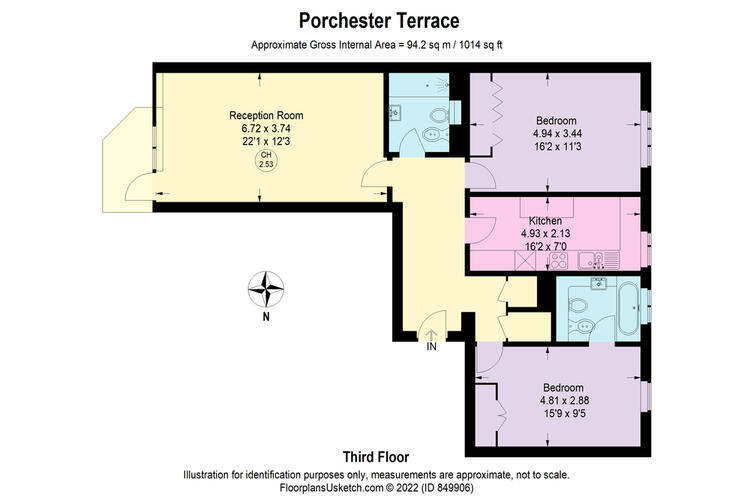 This two bedroom apartment is arranged on the third floor of a residential building located moments from Hyde Park. The apartment offers outside space with views towards Hyde Park and building Porter. Enter into a wide hallway with ample storage, this hallway divides the property with the reception to the front and the living areas to the rear. The reception is a nice spacious room with ample room for dining and entertaining while also giving access to a private balcony. The kitchen features lots of worktop space, breakfast bar and integrated appliances. The two bedrooms are of equal size and benefit from fitted storage, while the principal suite offers an en suite bathroom. There is also a contemporary tiled shower room.