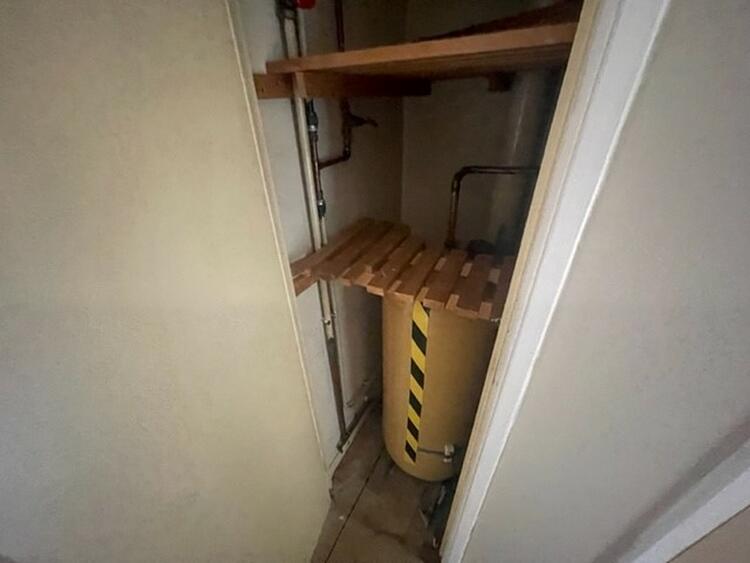 With airing cupboard having boiler (not tested) and storage cupboard.