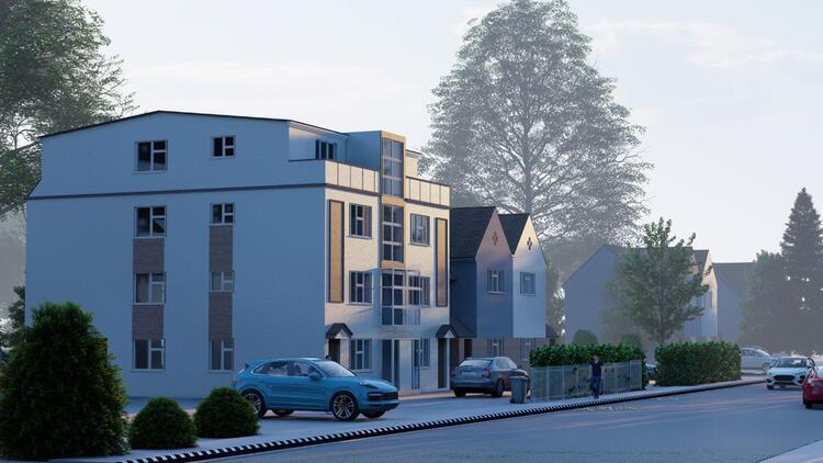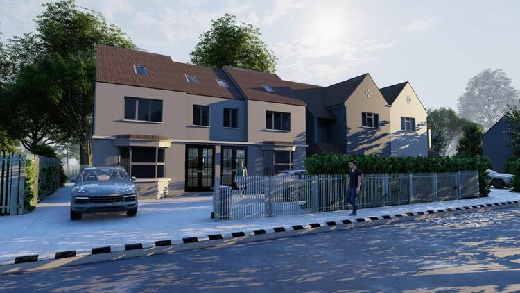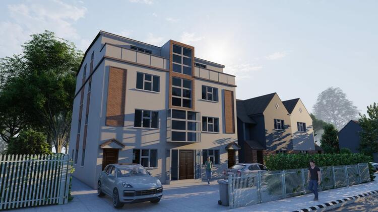Potential infill plot with proposed scheme drawn for a detached property consisting of 9x apartments arranged over four floors. We have been advised by the vendor that there is pre-planning approval for the nine flats. An alternative option for a pair semi detached dwellings may well be considered subject to obtaining the usual planning consents.