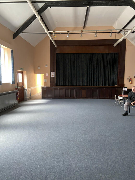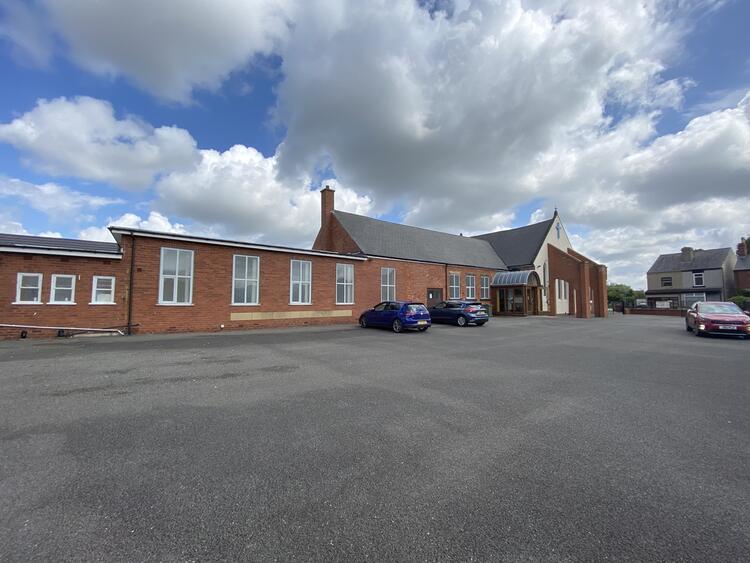 The principal access to the building is via a comparatively modern (1994) entrance porch with hardwood double glazed windows, which leads into the assembly hall, which is towards the centre of the building and has suspended timber floor, fluorescent strip lighting, central heating radiators, and a raised curtained stage with spot lighting. To the rear of the stage is a secondary hall/meeting room, kitchen, and ancillary storage space, together with an accessible WC, and ladies and gents WC facilities. Externally, there is a generous car parking area with tarmacadam-surfaced finish, with the principal access off Market Street, with a secondary egress which has the benefit of electric sliding gates to Shiners Way.