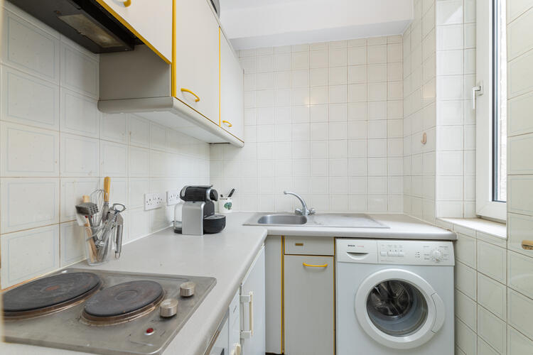 The property is arranged as a studio apartment comprising a reception/bedroom, separate kitchen and separate bathroom with bath, wc and wash basin.