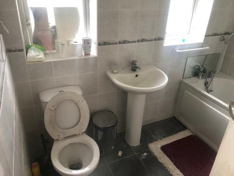 Having low flush w.c. wash hand basin and panel bath, part tiled and window to rear.