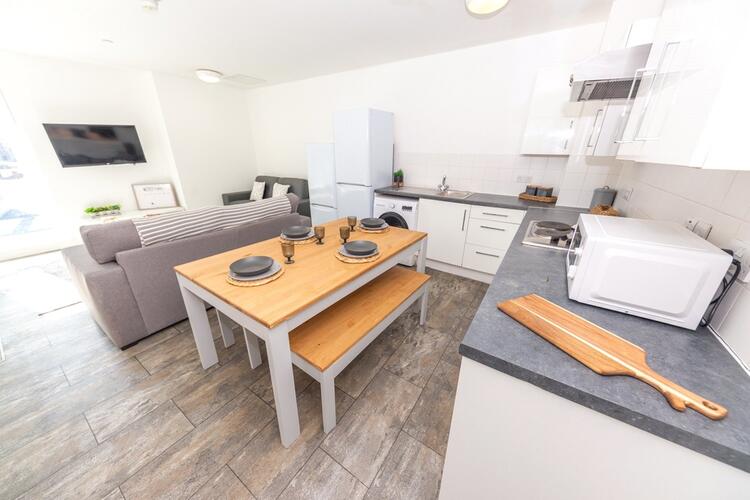 Fully furnished to a high standard each flat has a spacious living area complete with a Flatscreen TV with complimentary Netflix, seating area, fridge-freezer, microwave & kettle & toaster.