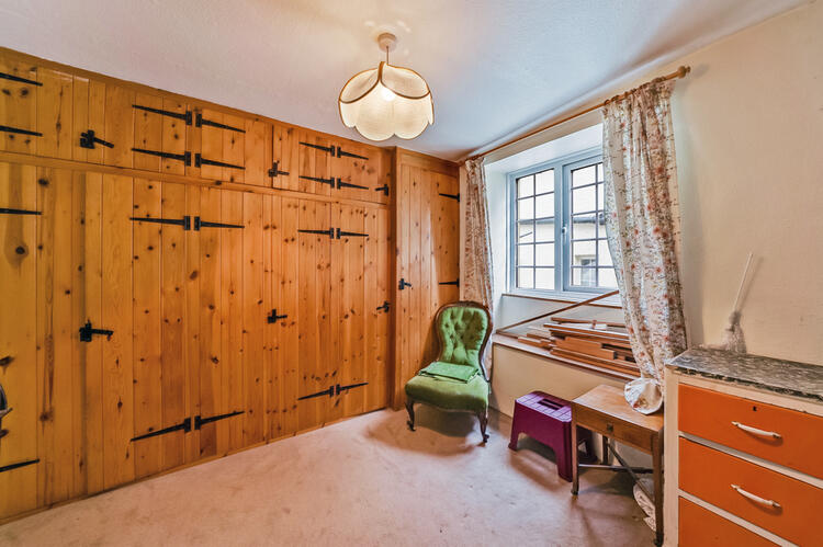 Window to front elevation. Built-in wardrobe with pine doors. Night storage heaters, swing doors to kitchen and door to bathroom