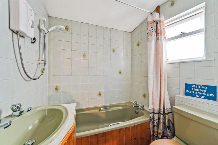 Fitted with suite comprising bath with shower over, WC and basin with vanity unit under. Obscure window to front