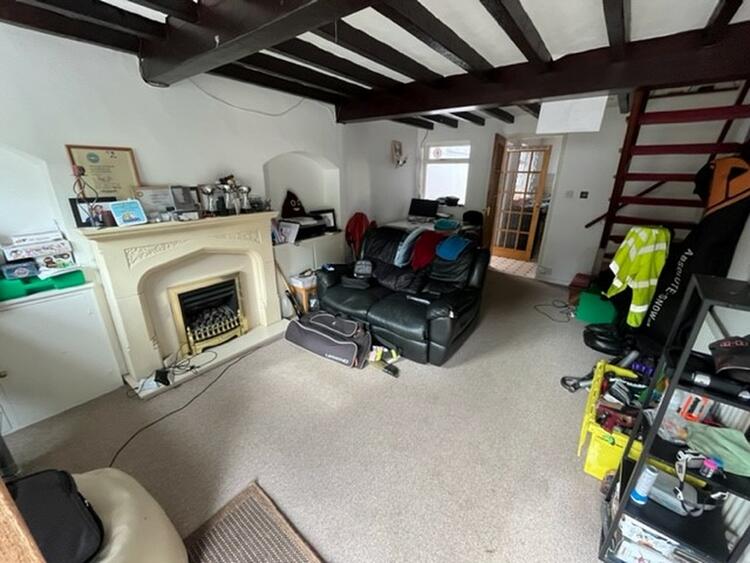 With windows to front and rear aspects, fireplace, radiator and stairs leading to the first floor.