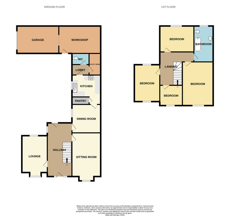 A spacious, four bedroom, detached house standing on a corner plot. Garage and workshop to rear. Good room sizes throughout with spacious hallway, 3 reception rooms, kitchen with pantry, utility room and ground floor W.C. Landing, 4 bedrooms and large bathroom.