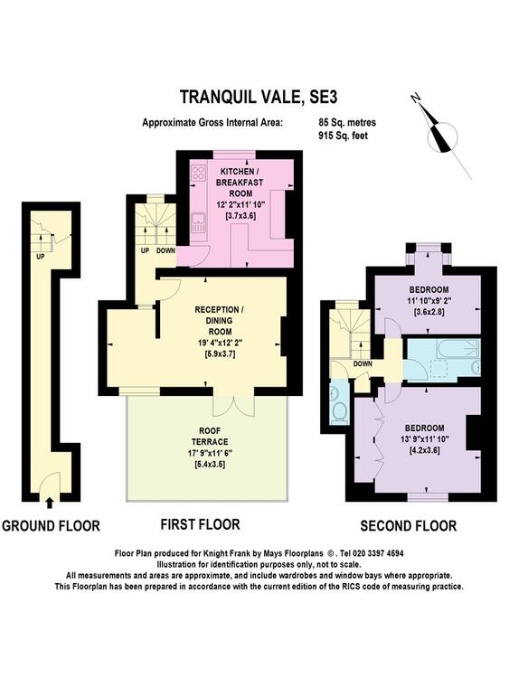 This prime two-storey maisonette is arranged over two floors comprising a private roof terrace, kitchen and reception room with office area on first floors and two bedrooms, a modern family bathroom and a separate WC on the second floor.