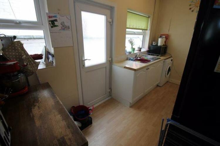 With kitchen units and worktops, sink unit, built in oven and hob. Two windows to side aspect and door to rear garden.