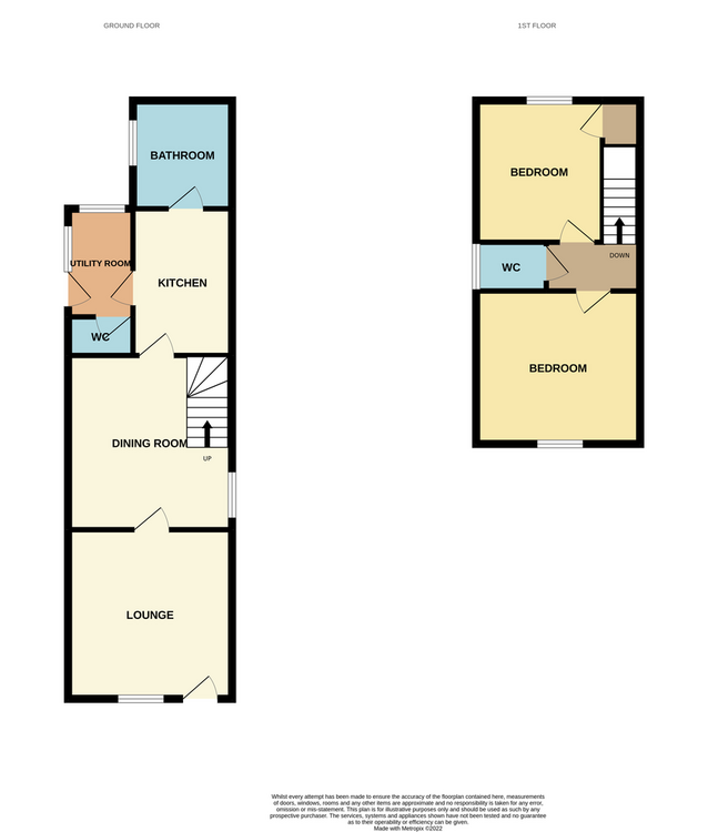 This property briefly comprises of two reception rooms, kitchen, utility, WC, and bathroom to the ground floor. To the first floor are two bedrooms and a WC.