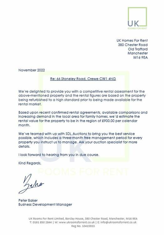 Located in a very popular residential location in Crewe with a wide range of amenities close by. The property has a lounge with a bay window, kitchen and three bedrooms as well as front and rear gardens with potential for parking for more than one vehicle.