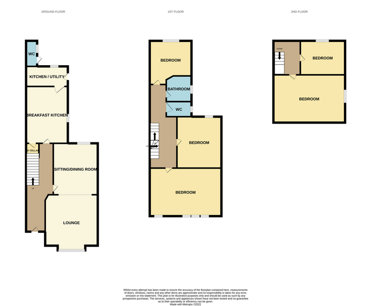 The property has five bedrooms, two reception rooms to go along with a breakfast kitchen and a kitchen/utility on the ground floor which has a fabulous tiled floor in the hall and kitchen. Below the ground floor there are two basement/cellar rooms and upstairs there are five bedrooms and bathroom with separate wc on the first and second floors. Outside there is a garden with an additional outside wc