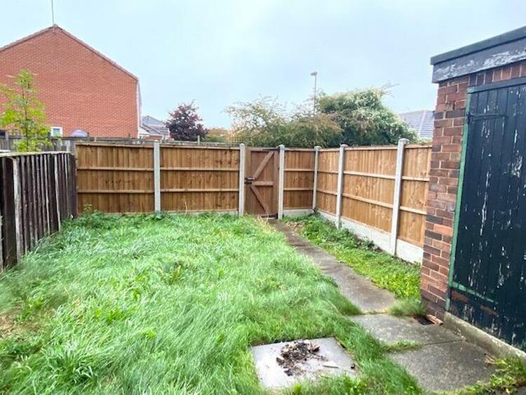 Enclosed rear garden with timber panelled fencing and access onto the communal parking area.