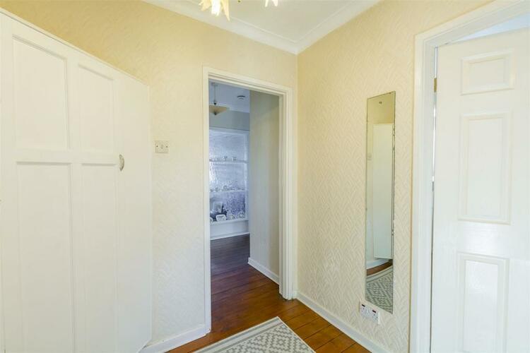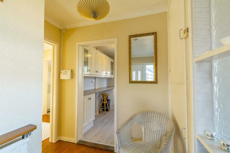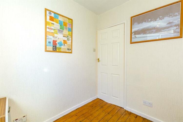 UPVC panel and double glazed side entrance door with double glazed window and panel to the side of the door, radiator, exposed and varnished floorboards, coving, alarm control panel, airing cupboard housing hot water cylinder with shelving and doors to: