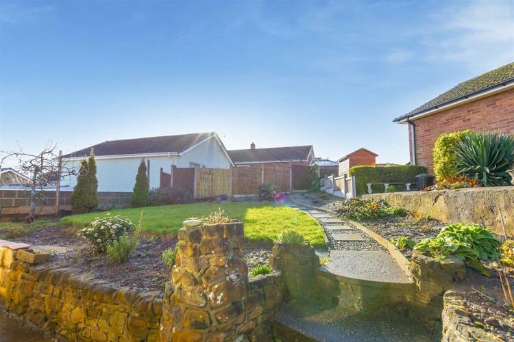 The bungalow is situated on an elevated plot benefiting from gardens to the front, side and rear. The front garden is predominantly lawned with planted rockery and flower borders housing a variety of mature bushes and shrubbery. Also to the front leading from the roadside there is a raised block paved driveway providing off street parking which in turn leads to the detached garage with electrically operated remote control fob garage door. To the side of the property there is an external water supply, useful brick garden store, uPVC double glazed door access leading to the gardeners potting shed. The rear garden benefits from a shaped lawned section with planted borders housing a variety of specimen bushes and shrubbery, there is a stepping stone pathway providing access to the foot of the plot which is decorated with gravel chippings to either side. Directly accessed from the side garden there is an initial lower paved patio area ideal for seating and entertaining.