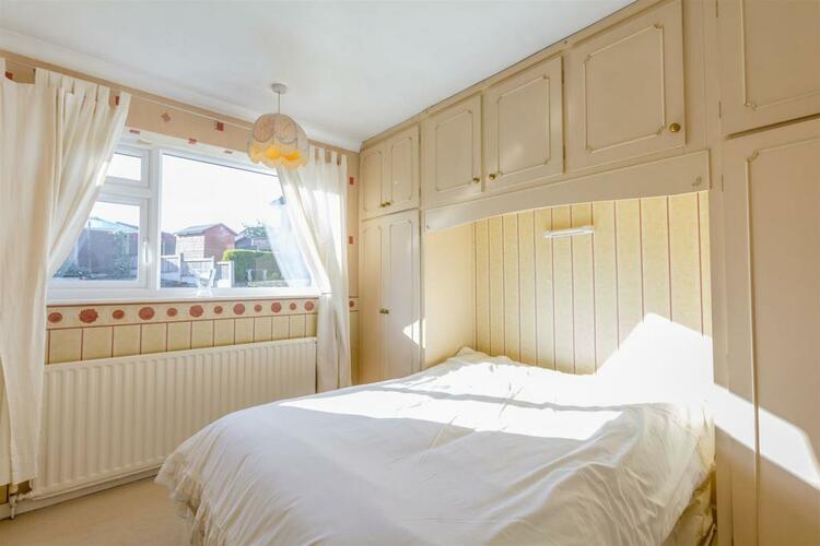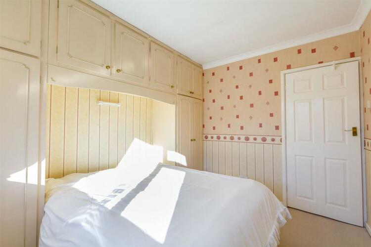 Double glazed window to the rear overlooking the rear garden, radiator, coving, and a range of fitted wardrobes with matching overhead storage cupboards.