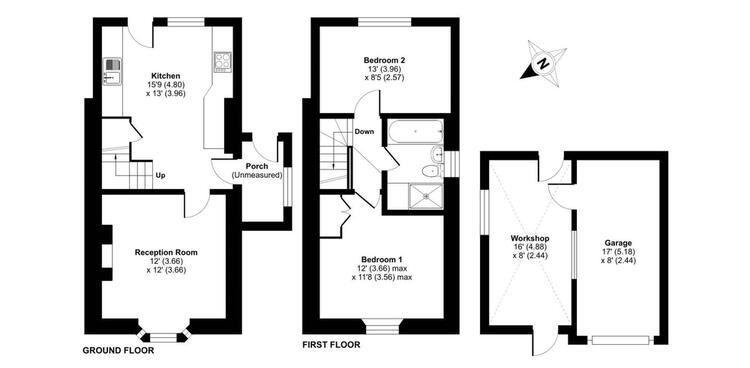 The single garage has an up and over door, light and power and useful storage space in the pitched roof. The lean-to workshop can be accessed from the front and rear, with personal door into the garage, fitted work bench, light and power.