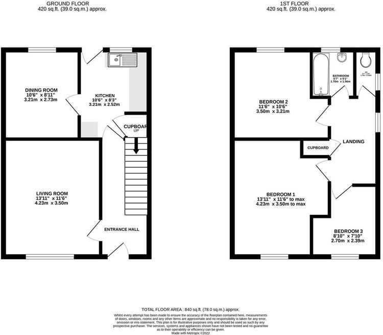 Entrance Hall. Living Room 4.23m x 3.5m (13ft 11 x 11ft 6). Dining Room 3.21m x 2.73m (10ft 6 x 8ft 11). Kitchen 3.21m x 2.52m (10ft 6 x 8ft 3)