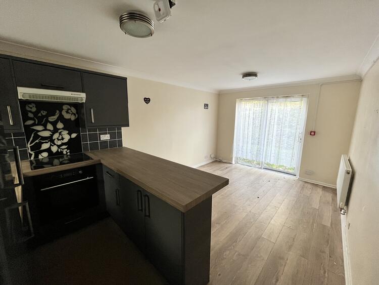 The property has its own front door and is set apart from the main apartment block. It offers two bedrooms, a living/kitchen/dining room, bathroom and some outside space with access to residents parking.