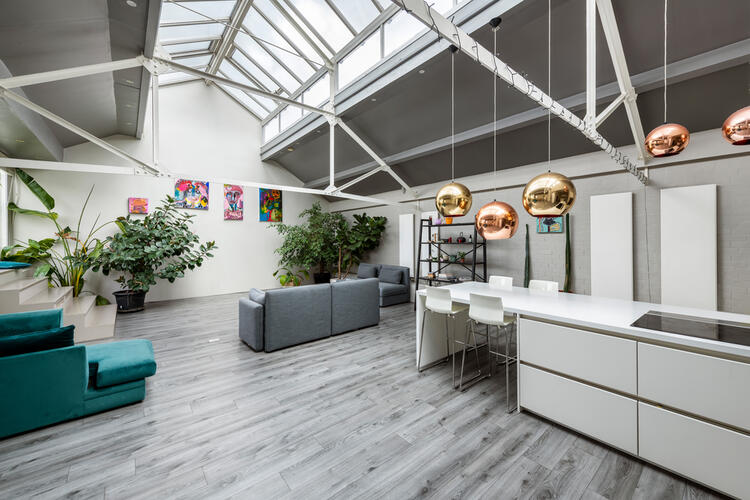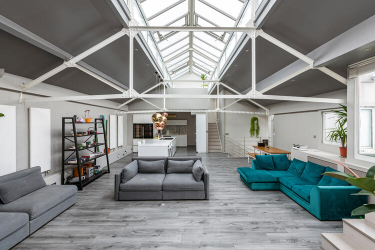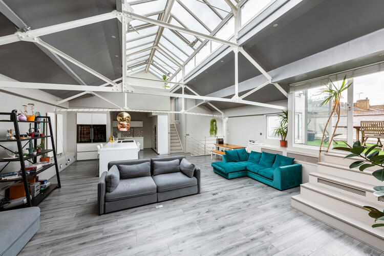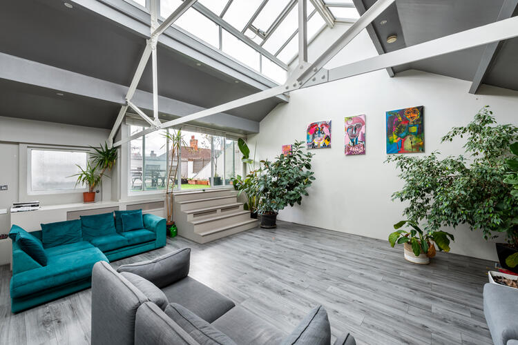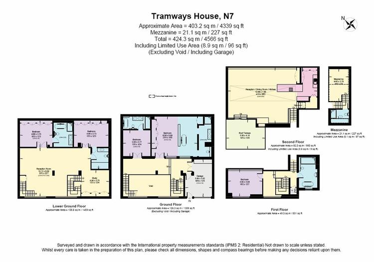 Tramways House is a unique property - this vast freehold warehouse has been imaginatively converted to provide over 4,500 sq ft of light filled space within this former Victorian tram shed. Although the property would benefit from a degree of sympathetic refurbishment, it offers the scope to be re-modelled to create a truly outstanding home. With a discreet frontage down a quiet side street just off Camden Road, the exterior gives nothing away, however inside the staggered floors enhance the feeling of both space and light. The main living space on the second floor, at 41' in length and with 5 metre high ceilings lit from above by a lantern roof spanning the entire length of the room is the centrepiece of this wonderful home, Opening from the street on to a galleried hall via the integral garage, an industrial staircase leads to the upper and lower levels. On the ground floor is a generous principal bedroom suite, together with a second en-suite bedroom with a third bedroom and bathroom on the first floor. On the lower ground floor are two further bedrooms and an open study arranged around a second living space within a double height void lit from above by street level windows. A further mezzanine study and shower room can be found above the kitchen and the superb south-facing roof terrace is accessed via full height sliding doors from the reception room, ideal for summer entertaining. Above all, the space that Tramways House has to offer is incredibly flexible allowing the new owner to tailor it to their needs, subject to obtaining necessary permissions.