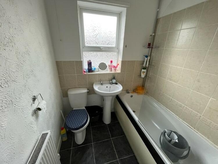 Having low flush w.c. wash hand basin and panel bath with electric shower over. Radiator and window to rear.