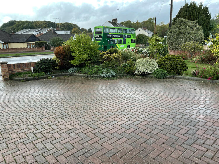 To the front of the property, there is a driveway for multiple cars and side gated access to a rear garden.