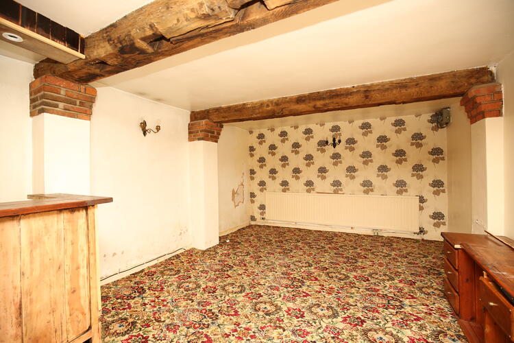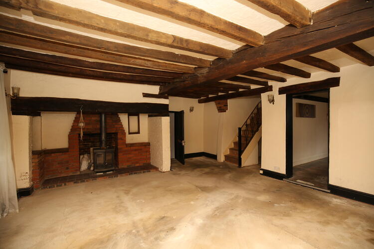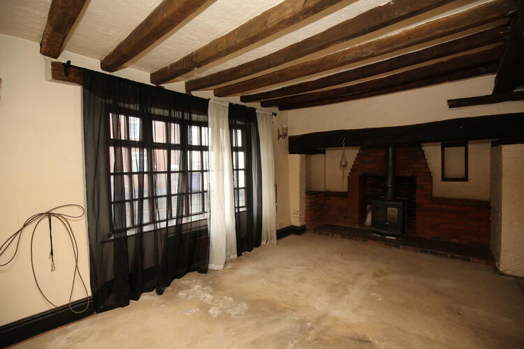 Having a bow window to front aspect, picture window to side aspect, exposed ceiling beams, inglenook fireplace with an inset log burning stove, stairs leading off to the first floor landing, side entrance door and access to the dining room.