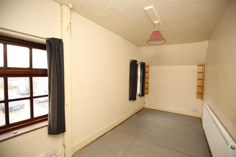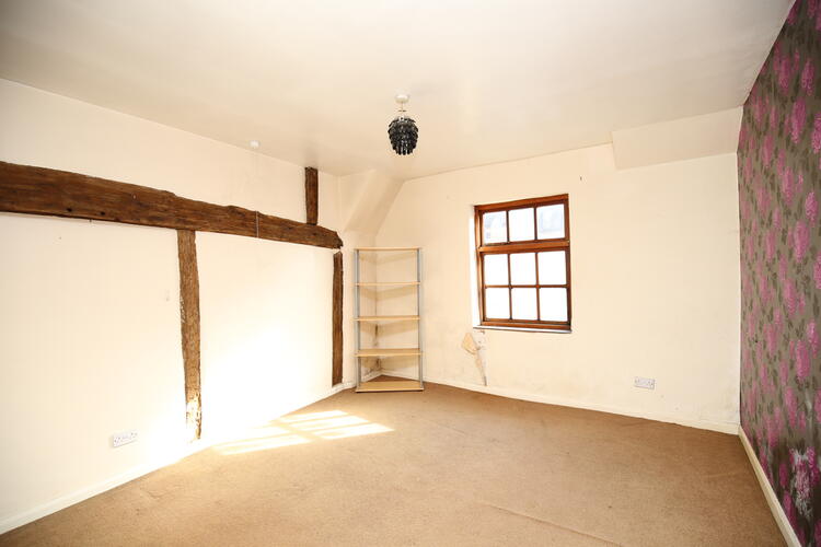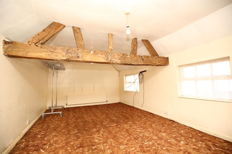 Two windows to front aspect, vaulted ceiling with exposed beams, two double panelled radiators, fitted wardrobes and feature exposed brickwork.
