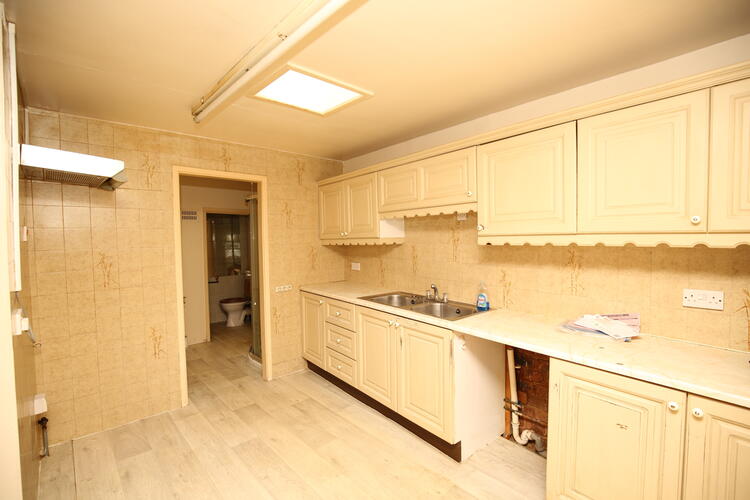 Window to side aspect, base and eye level units, roll edge work surfaces, sink.