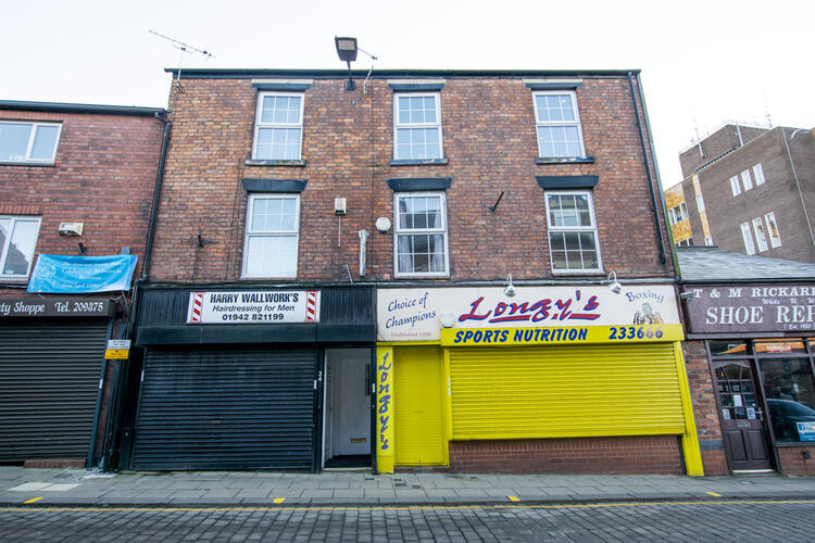 Situated in Wigan Town Centre is this substantial mixed-use freehold property including two commercial shop spaces on the ground floor, and four residential one-bedroom flats above on first and second floor.