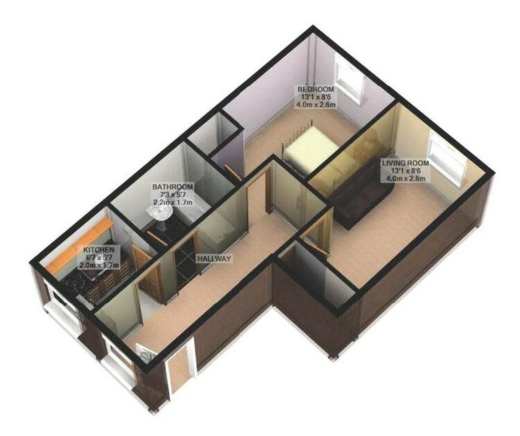 Flat Four: One bedroom flat, approximately 366 sq.ft (34 sq.m), let at £4,740 per annum.