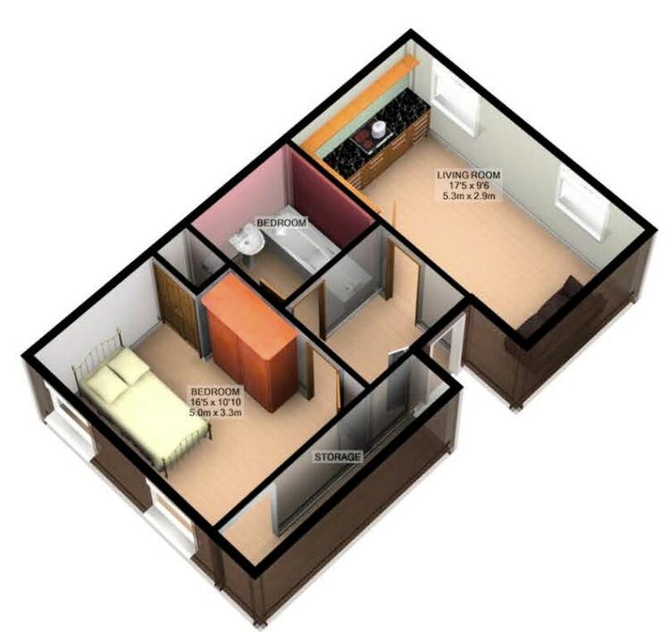 Flat Two: One bedroom flat, approximately 366 sq.ft (34 sq.m), potential rental at £5,400 per annum. Contracts have not been renewed for the purpose of sale.