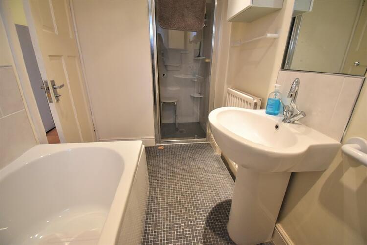 Set off the kitchen is the bathroom fitted with a full four-piece suite comprising low flush WC, pedestal hand wash basin, panelled bath and separate shower enclosure together with tiling to splashback areas and full height to the shower cubicle, tiled floor, uPVC double glazed window to the rear and a central heating radiator.