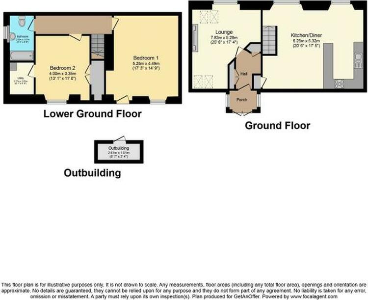 The accommodation briefly comprises entrance porch, entrance hallway, lounge with multi fuel stove, dining kitchen, two double bedrooms, laundry room and bathroom. To the front of the property is a small cobbled garden or parking area and a stone built shed