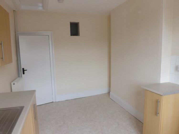 14ft3 x 8ft4 - Range of wood effect floor and wall units. Stainless steel sink unit. Space for washing machine. Space for oven. Sash window to rear aspect with secondary glazing. Vinyl flooring. Radiator. Space for table and chairs.