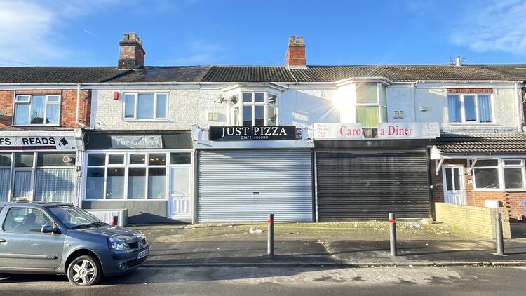 The property is arranged as a ground floor commercial unit, currently operating as a fast-food takeaway (let at £400 per calendar month) and an upper floor flat (let at £425 per calendar month).