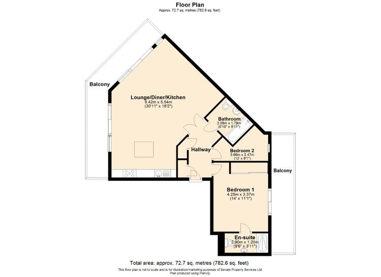 Benefiting from double glazing, gas central heating, secure entrance with intercom system, communal staircase and lift to all floors. Property comprises an entrance hallway with fitted storage and double opening doors into lounge/diner/kitchen, lounge area with sliding patio door onto wrap around balcony/terrace, fitted kitchen area with integrated appliances and further sliding patio door onto wrap around balcony/terrace, bedroom one with fitted wardrobe, en-suite shower room and sliding patio door onto balcony/terrace, bedroom two and fitted principal bathroom.