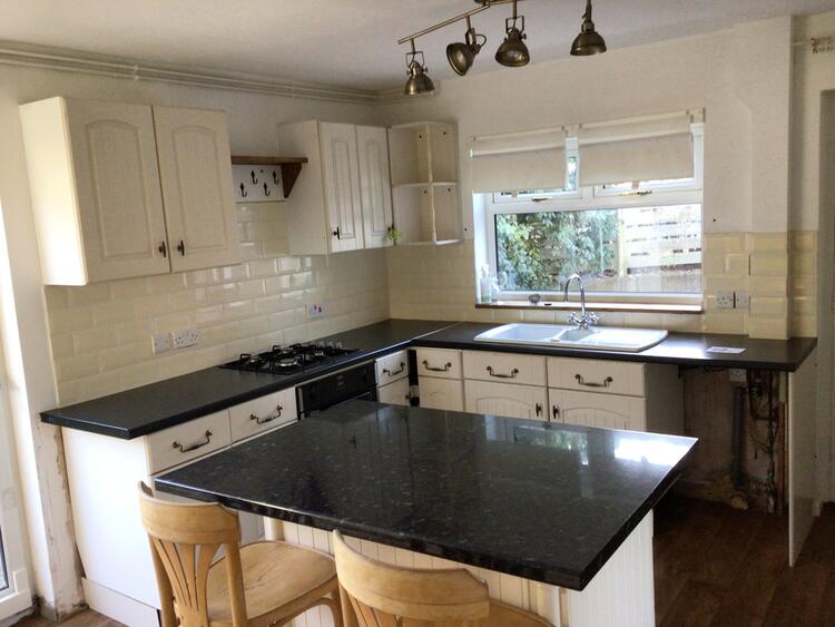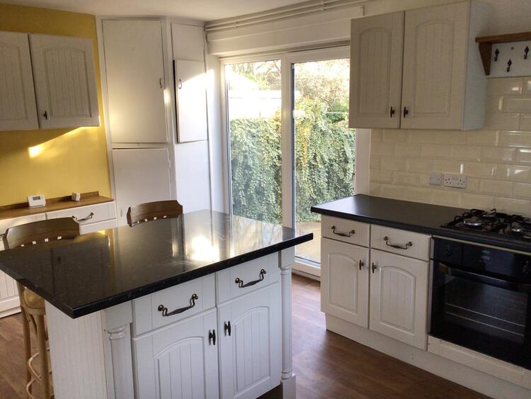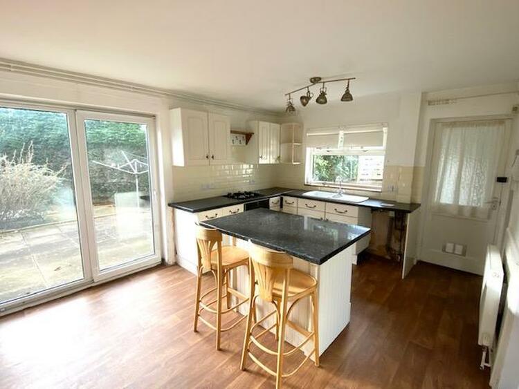 Comprising of three double base units, two single base units, one double wall unit and four single wall units with built in gas hob and electric oven(NOT TESTED), single drainer sink unit, work surface areas with tiled splashbacks, UPVC double glazed window to the side, UPVC double glazed window double French doors opening to the rear patio. Central heating radiator, understairs store, boiler cupboard housing the Worcester wall mounted gas fired combination boiler. Part glazed door opening to the-