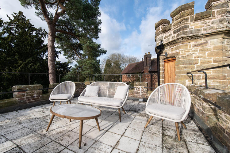 Arley Tower is an impressive Grade II listed folly, constructed in 1842 from local Arley stone. Built in a Gothic Revival style by the owner of the Arley Estate, Lord Mountnorris. Internally the property has under gone a significant refurbishment sympathetic to the buildings character whilst offering modern conveniences. The two storey tower boasts a three storey octagonal stair turret which leads to the accommodation, main living rooms and roof terrace which enjoys spectacular views. On the ground floor there is a master bedroom with en suite, leading to a second bedroom which could also be used suitably for an office or dressing room. French doors lead off the master bedroom to the rear courtyard. From the spiral staircase the first floor comprises of a vaulted living room and balcony. Also on this floor is a cloakroom and the kitchen. The accommodation is light and spacious. The kitchen has modern fittings and wall mounted units. It is housed in the twentieth century extension to Arley Tower and enjoys views across the Severn valley. On the final floor, the tower leads to the roof terrace which is a superb spot to enjoy the views over Upper Arley itself and the River Severn. This provides a fantastic level viewing platform for outdoor dining.