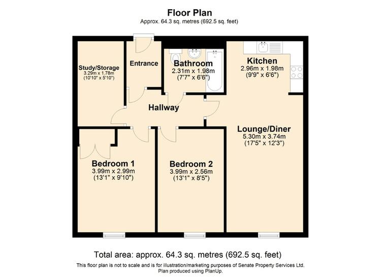 Benefiting from double glazing, gas central heating and comprising of secure communal entrance, communal staircase and lift to all floors, entrance, hallway, lounge/diner, fitted kitchen with integrated washing machine, electric oven, four ring gas hob with chimney style extractor, bedroom one with fitted double wardrobe, further double bedroom, study/storage and fitted bathroom.