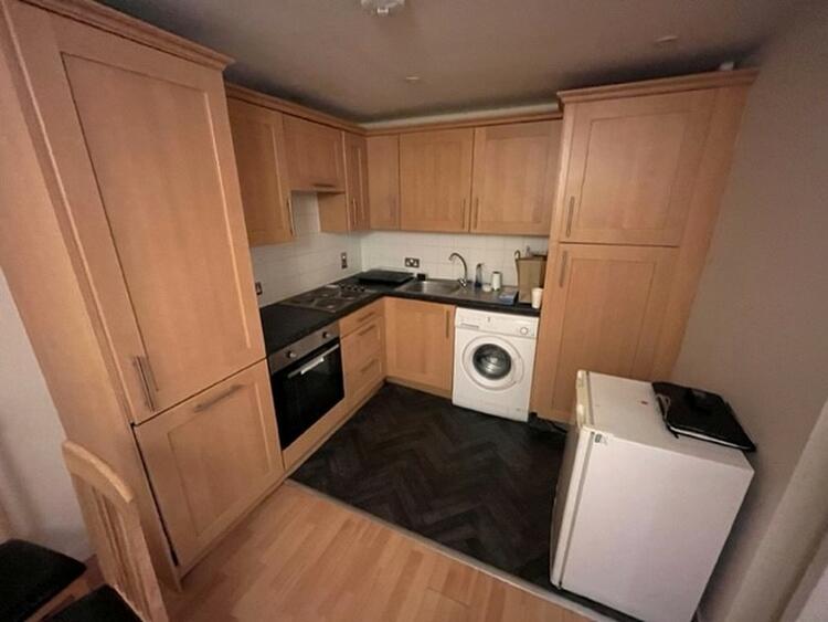 With base and wall units, sink, integrated oven, hob and extractor unit. Roll top work surfaces and spot lighting.