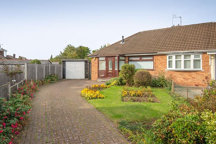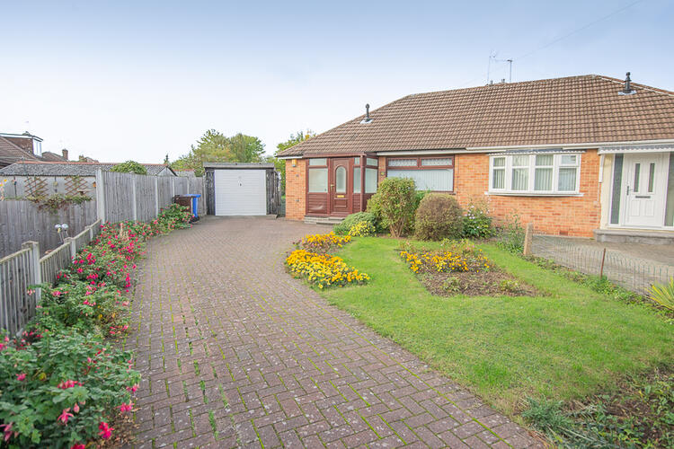 An extended semi detached bungalow occupying a larger than average plot set back within an established and small cul-de-sac of bungalows. The property benefits from ample off road parking, detached garage and established gardens.