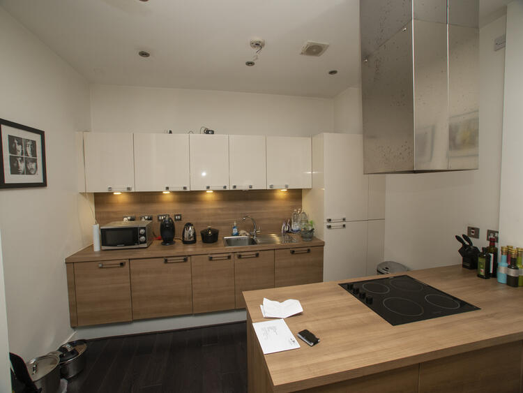 One bedroom, open-plan lounge and kitchen, bathroom.