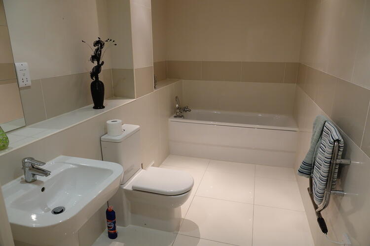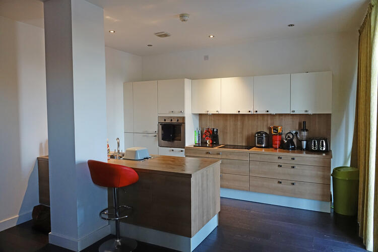 Two bedrooms, one en-suite, open-plan lounge and kitchen, bathroom.