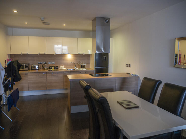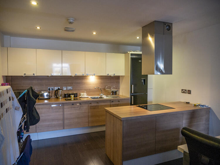 One bedroom, open-plan lounge and kitchen, bathroom.