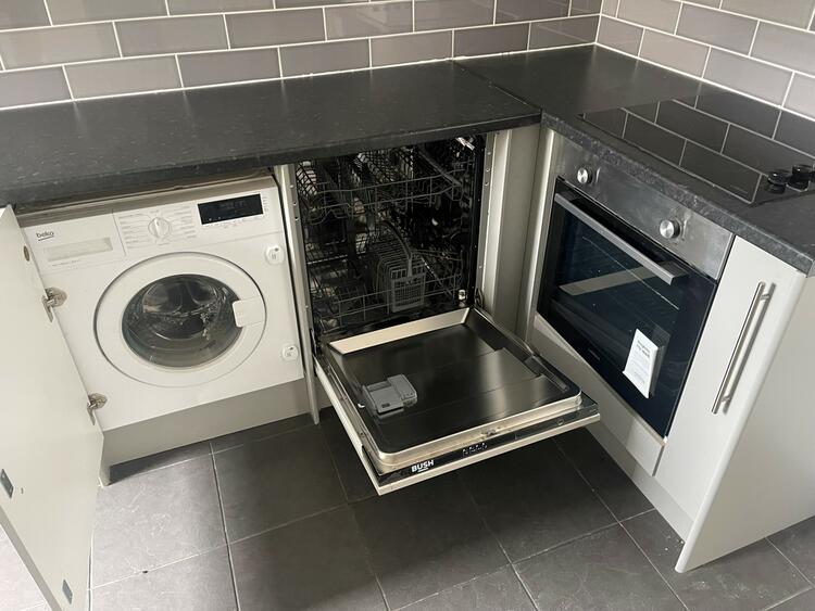 The property comprises living room, fitted kitchen with breakfast bar and tiled floor, washing machine, dishwasher and oven (all not tested but appearing new), and ground floor bathroom. To the first floor there are two double and one single bedrooms.